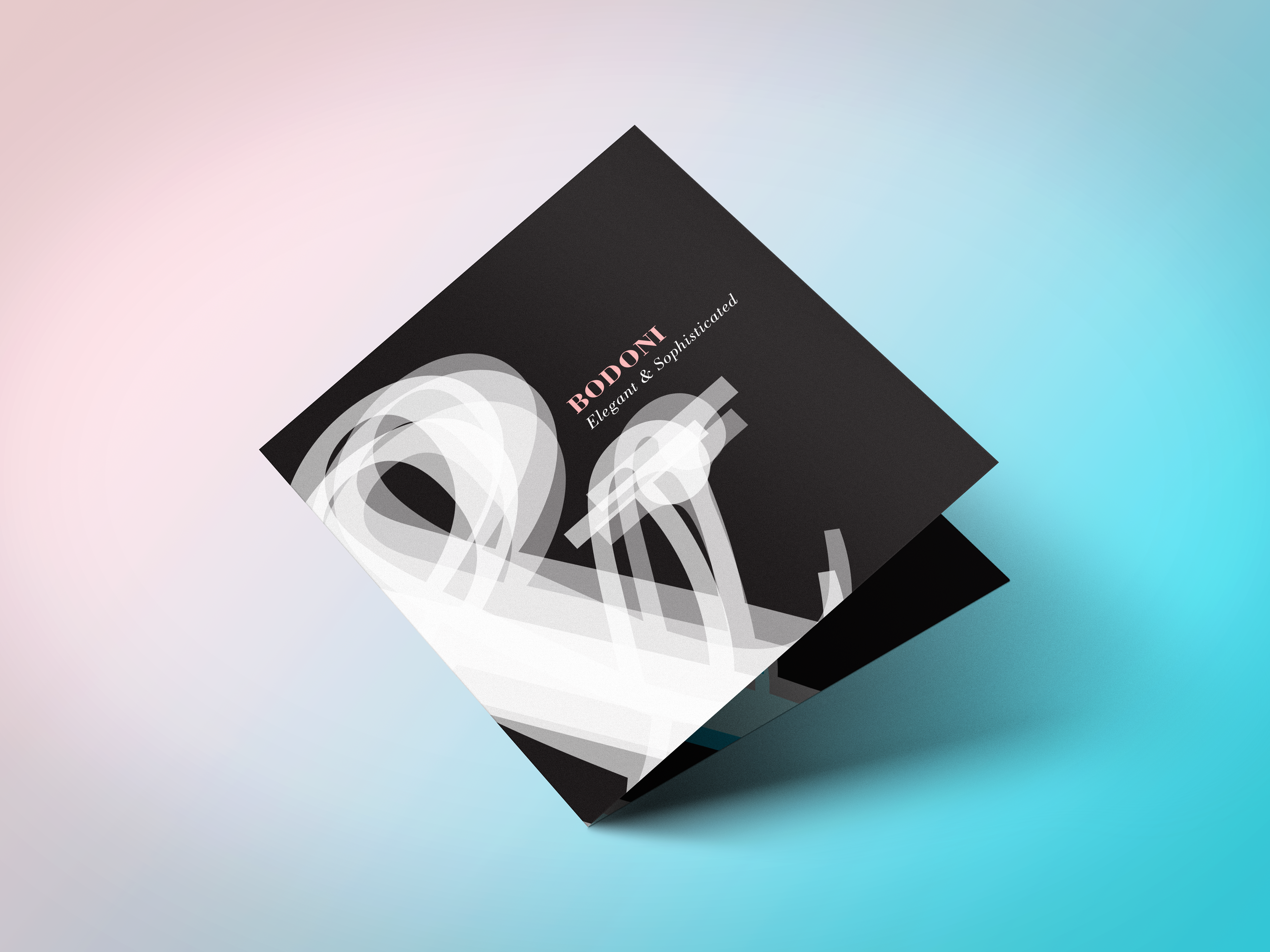 Bodoni is a type specimen project displaying Bodoni's unique characteristics on a poster and poster cover booklet. The defining characteristics of the project feature layered ampersands displaying Bodoni's various fonts and an elegant color scheme.